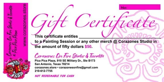 Now you will now be able to paint any Corazones painting you want, whenever you want! Paint with your family, get together with a few friends, or simply treat yourself to a fun, healing experience in the privacy of your own home.